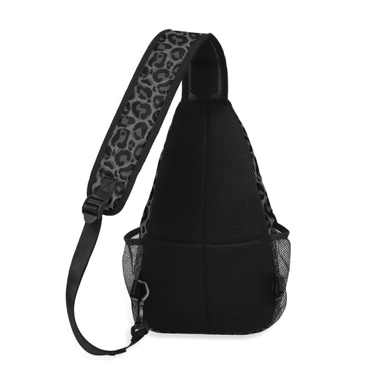 Black Leopard Chest Crossbody Sling Bag with Adjustable Strap, Grey Animal Print Men Women Ladies Backpack Purse Travel Shoulder Canvas