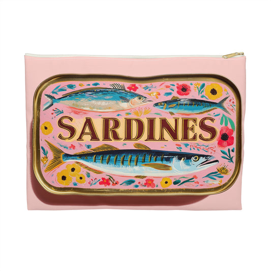 Sardine Can Print Zipper Pouch, Fish Pencil Case Vintage Pen Coin Makeup Travel Cosmetic Bag Accessory Canvas Zipper Large Small Organizer