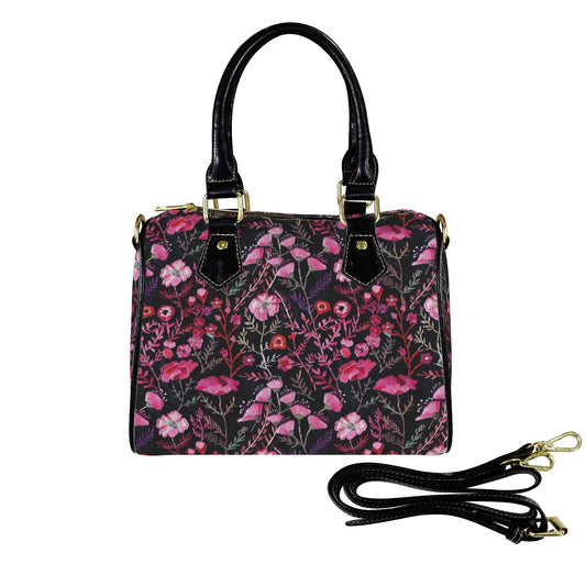 Pink Floral Purse Handbag, Flowers Women Ladies Print Canvas and Leather Barrel Type Designer Accessory Shoulder Crossbody Bag Gift