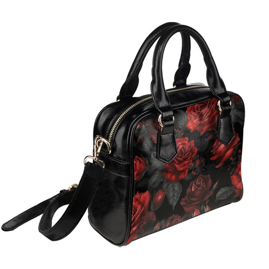 Red Roses Shoulder Purse, Cute Black Small Goth Retro Vintage Vegan Leather Women Designer Handbag with Strap Crossbody Bag