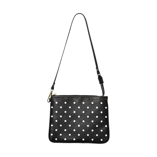 Polka Dot Small Leather Shoulder Bag, Black White Print Women Unique Cross Evening Travel Handmade Messenger Crossbody Zipper Purse