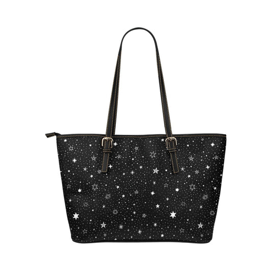 Stars Tote Bag Purse, Galaxy Space Celestial Print Handbag High Grade Leather Zip on Top Designer Handmade Shoulder Small Large Bag Women