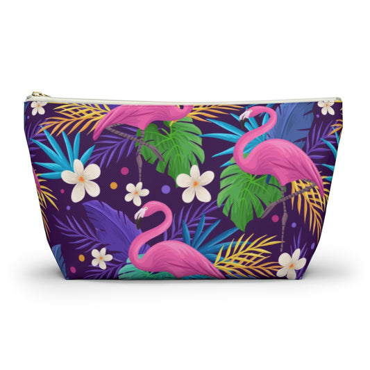 Flamingo Tropical Pouch Bag, Pink Purple Canvas Travel Wash Makeup Toiletry Bath Organizer Cosmetic Gift Accessory Large Small Zipper