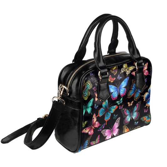 Butterfly Leather Purse, Women Colorful Pink Blue Designer Handbag Animal Print Black Small Cute Shoulder Vegan Leather Crossbody Bag Ladies