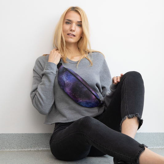Galaxy Fanny Pack, Space Universe Purple Women Men Waist Hip Bum Bag 90s Designer Belt Hip Waist Crossbody Shoulder Festival Rave Bag