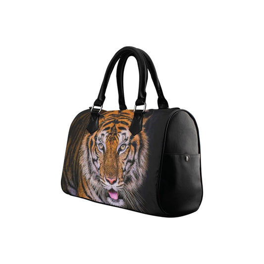 Bengal Tiger Top Handle Handbag, Animal Face Print Art Print Purse Canvas and Leather Barrel Type Designer Accessory Women Bag Gift
