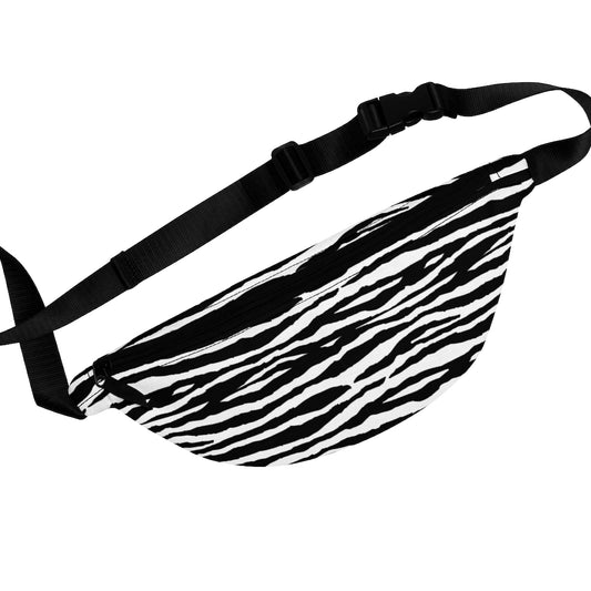 Zebra Stripes Fanny Pack, Animal Print Black White Festival Hip Waist Canvas Vacation Belt Vegan Vintage Women Bag