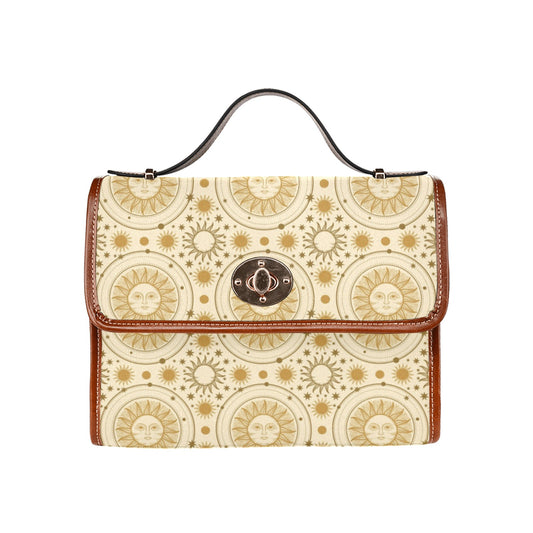Boho Sun Canvas Satchel bag, Vintage Waterproof Cottagecore Brown Cute Women Crossed Body Purse Vegan Leather Strap Handbag Gift