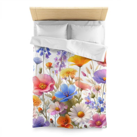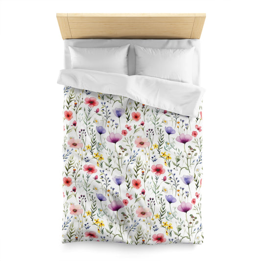 Wildflowers Duvet Cover, Floral Watercolor Bedding Queen King Full Twin XL Microfiber Unique Designer Bed Quilt Bedroom Decor