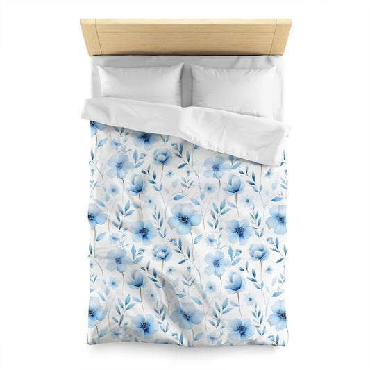 Blue Floral Duvet Cover, Wild Flowers Watercolor Bedding Queen King Full Twin XL Microfiber Unique Designer Bed Quilt Bedroom Decor