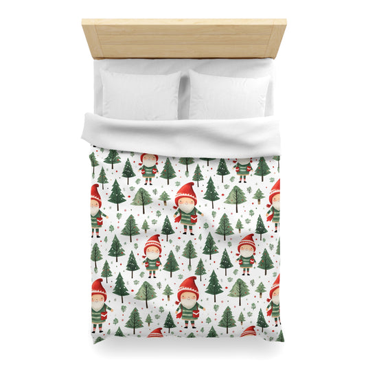 Elf Duvet Cover, Christmas Trees Xmas Bedding Single Double Queen King Full Twin XL Microfiber Unique Bed Quilt Bedroom Decor