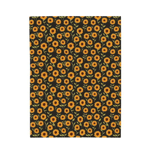 Sunflower Fleece Throw Blanket, Black Yellow Flowers Velveteen Soft Plush Fluffy Cozy Warm Adult Kids Small Large Sofa Bed Décor