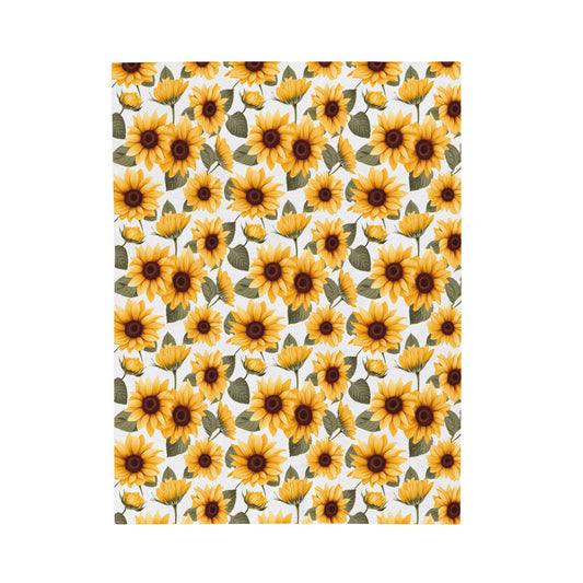 Sunflower Fleece Throw Blanket, White Yellow Flowers Velveteen Soft Plush Fluffy Cozy Warm Adult Kids Small Large Sofa Bed Décor