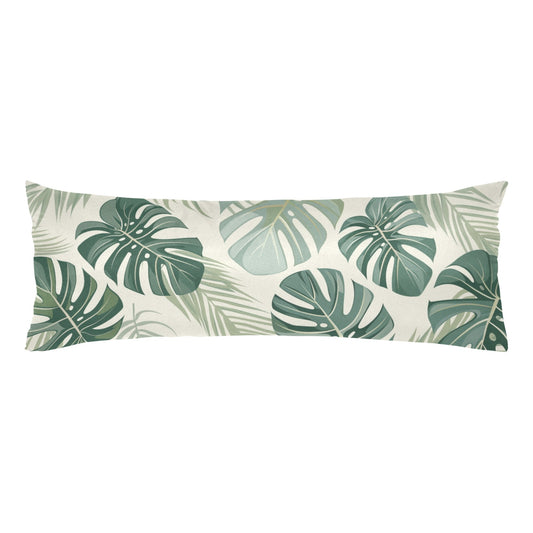Monstera Leaf Body Pillow Case, Sage Green Tropical Retro Long Large Bed Accent Print Throw Decor Decorative Cover Cushion 20x54