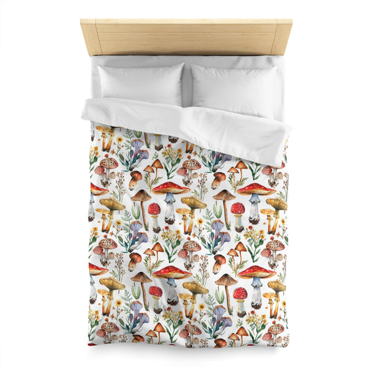 Mushroom Duvet Cover, Cottagecore White Floral Flowers Bedding Queen King Full Twin XL Microfiber Unique Designer Bed Quilt Bedroom