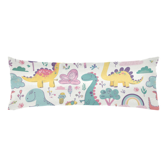 Dino Body Pillow Case, Cute Dinosaurs Anime Kawaii Doodle Long Full Large Bed Accent Print Throw Decor Kids Decorative Cover 20x54 Satin