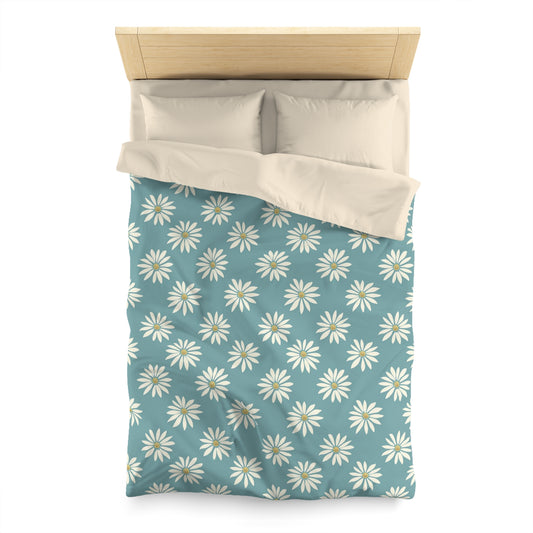 Daisy Duvet Cover, Floral Flowers Blue White Bedding Queen King Full Twin XL Microfiber Unique Designer Bed Quilt Bedroom Decor