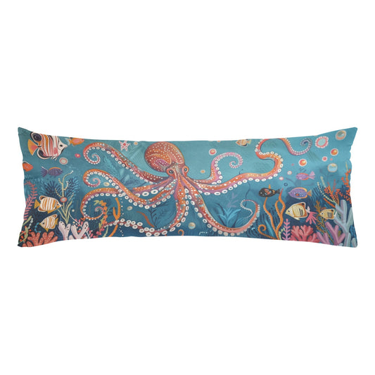 Octopus Body Pillow Case, Ocean Underwater Fish Coastal Long Full Large Bed Accent Print Throw Decor Decorative Cover 20x54 Satin Nautical
