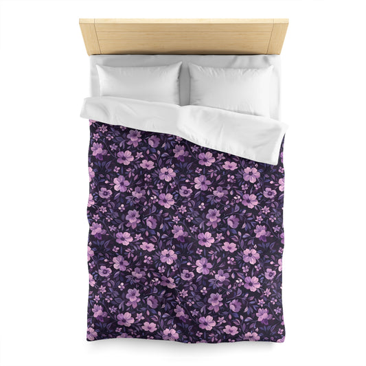 Dark Purple Floral Duvet Cover, Flowers Bedding Queen King Full Twin XL Microfiber Unique Designer Bed Quilt Bedroom Decor