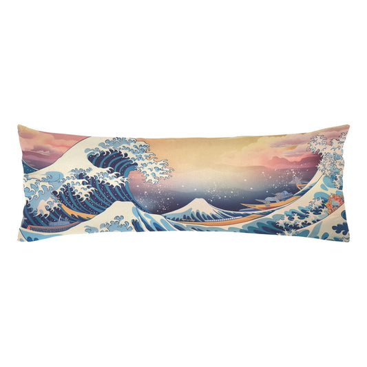 Great Wave Body Pillow Case, Japanese Ocean Sea Beach Long Full Large Bed Cute Accent Print Throw Decorative Cover 20x54 Satin Washable