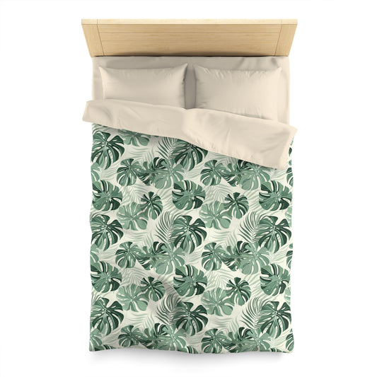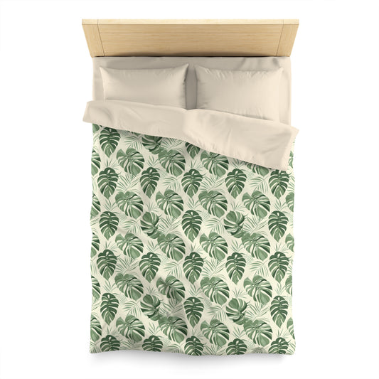 Monstera Leaf Duvet Cover, Green Tropical Bedding Queen King Full Twin XL Microfiber Unique Designer Bed Quilt Bedroom Decor
