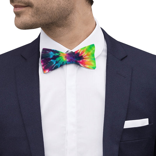 Tie Dye Bow Tie, Colorful Hippie 70s 1970s Classic Chic Adjustable Pre Tied Bowtie Gift Him Men Tuxedo Groomsmen Necktie Wedding Suit Dress
