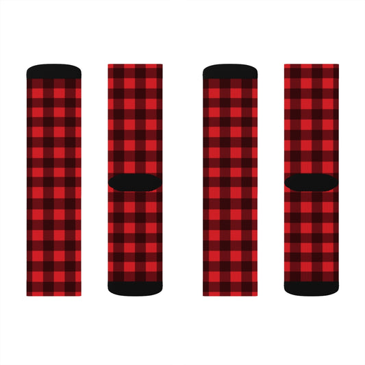 Buffalo Plaid Socks, 3D Printed Sublimation Red black Check Lumberjack Women Men Fun Cool Funky Casual Cute Unique Socks