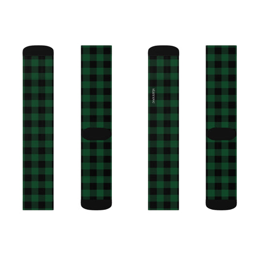 Green Buffalo Plaid Socks, Black Check Checkered Printed Sublimation Lumberjack Women Men Fun Cool Casual Cute Unique Socks