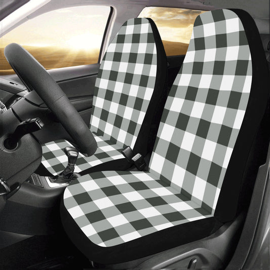 Buffalo Plaid Car Seat Covers 2 pc, Black and White Check Lumberjack Front Seat Covers, Car SUV Seat Protector Accessory