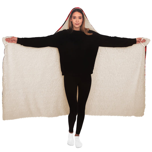 Red Black Buffalo Plaid Wearable Hooded Blanket, Sherpa Check Lumberjack Fleece Microfleece Throw Adult Youth Men Woman Cloak Winter Gift