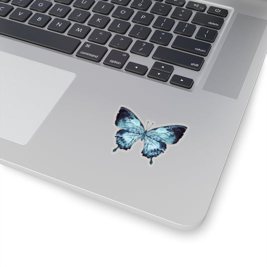 Blue Watercolor Butterfly Sticker, Art Die Cut Laptop Decal Vinyl Cute Waterbottle Tumbler Car Bumper Aesthetic Label Girl Wall Mural