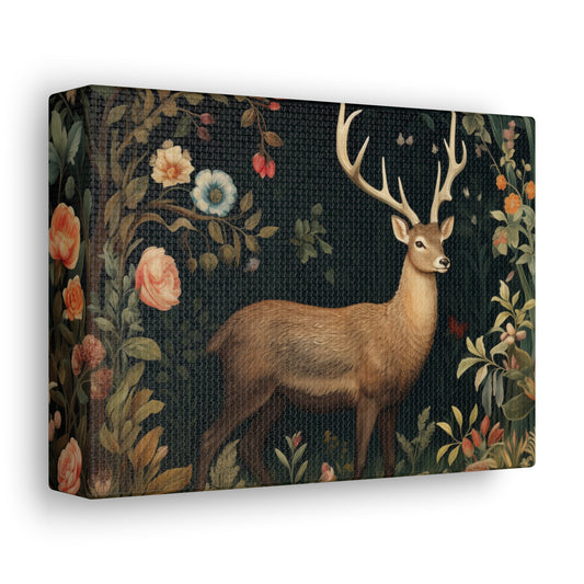 Deer Canvas Gallery Wrap, Forest Floral Flowers Stag Animal Wall Art Print Decor Small Large Hanging Landscape Living Room