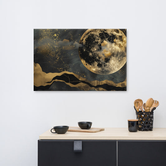Black Gold Moon Canvas Wall Art, Abstract Clouds Celestial Wrapped Print Small Large Big Gallery Artwork Painting Living Room Hanging