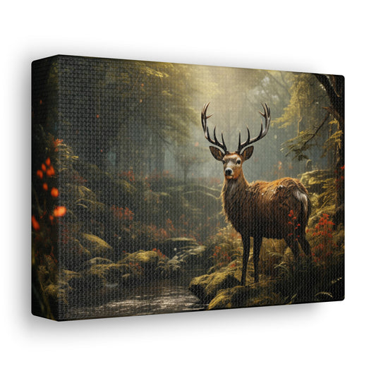 Deer Canvas Gallery Wrap, Forest River Floral Flowers Stag Animal Wall Art Print Decor Small Large Hanging Landscape Living Room