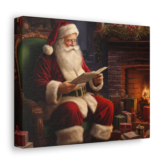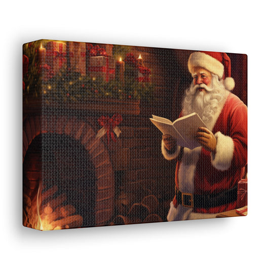 Santa Claus Canvas Gallery Wrap, Christmas Xmas Fireplace Holidays Wall Art Print Decor Small Large Hanging Landscape Living Room