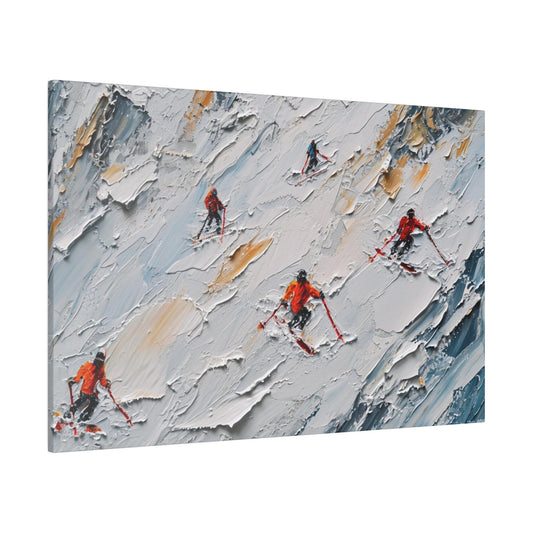 Skiers Mountain Canvas Wall Art, Winter Scene Ski Snow Printed Oil Painting Wrapped Small Large Big Gallery Artwork Living Room Hanging