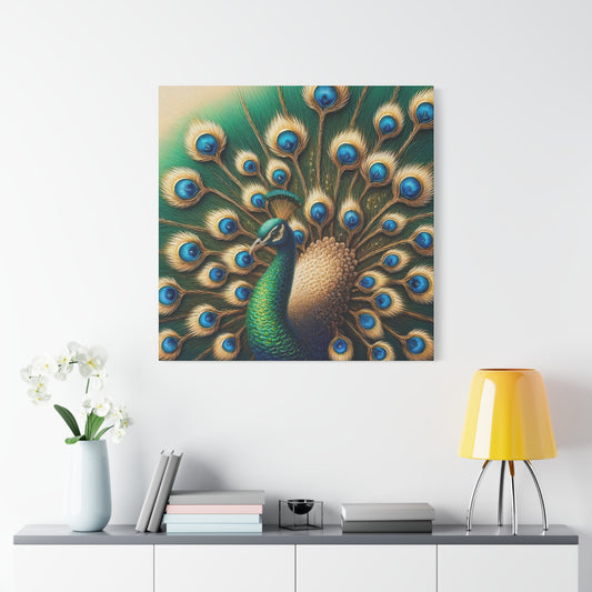 Peacock Canvas Gallery Wrap, Green gold Wall Art Print Artwork Decor Small Large Hanging Modern Vintage Square Painting Poster