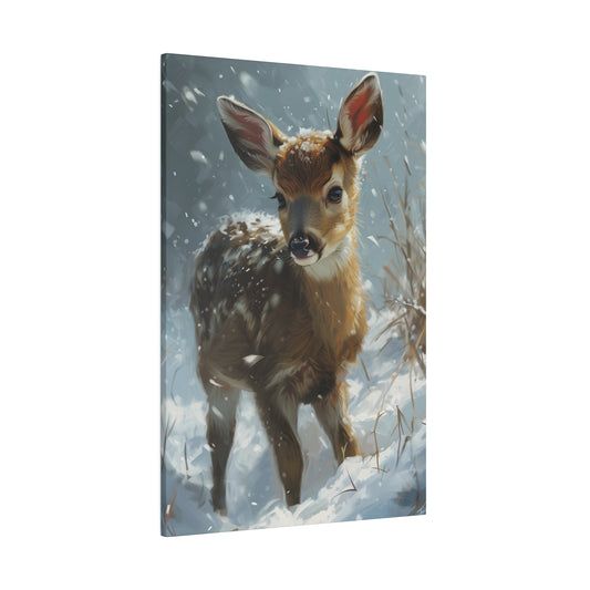 Baby Deer Canvas Gallery Wrap, Watercolor Fawn Animal Winter Snow Wall Art Print Decor Small Large Hanging Vertical Living Room