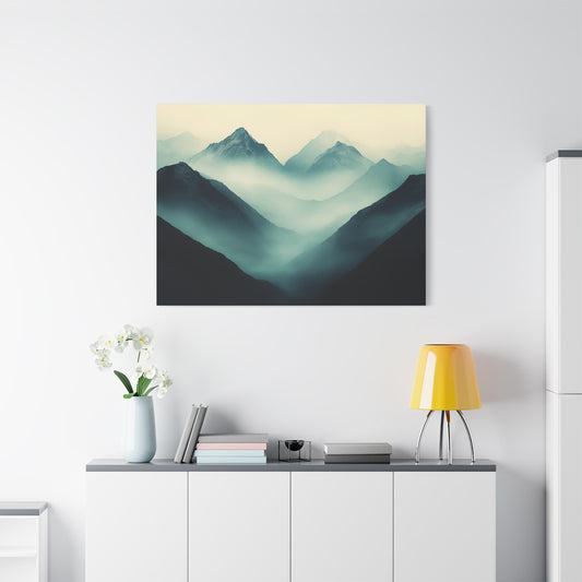 Mountains Canvas Gallery Wrap, Mist Green Scenic Wall Art Print Artwork Decor Small Large Hanging Modern Vintage Landscape Poster
