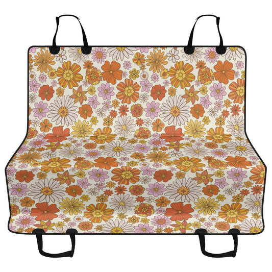 Retro Floral Dog Back Seat Cover, Vintage Flowers 70s Groovy Cat Protector Pets Waterproof Washable Vehicle Blanket SUV Truck Auto Accessory