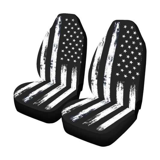 USA America Flag Car Seat Covers 2 pc, US Distressed Black White Patriotic American Front Auto Car SUV Protector Accessory Decoration
