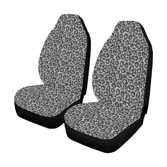 Leopard Car Seat Covers for Vehicle 2 pc, Grey Animal Print Black Pattern Front Seat Covers, Car SUV Gift Her Protector Accessory Decoration