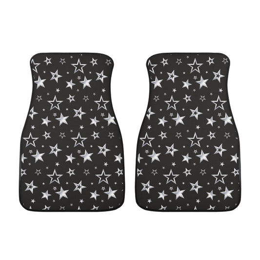 Stars Car Front and Back Floor Mats (Set of 4), Black Print Aesthetic Auto Vehicle Suv Truck Accessories Rubber All Weather Women Men Mat