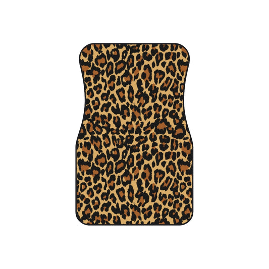 Leopard Car Floor Mats Set (2x Front), Animal Print Aesthetic Women Men Auto Vehicle Suv Truck Accessories Rubber All Weather Mat