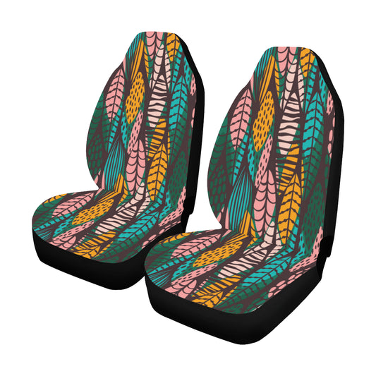Surfing Boho Car Seat Covers 2 pc, Leaf Aztec Tribal Indian Pattern Bohemian Art Front Seat Covers, Car SUV Seat Protector Accessory Decor