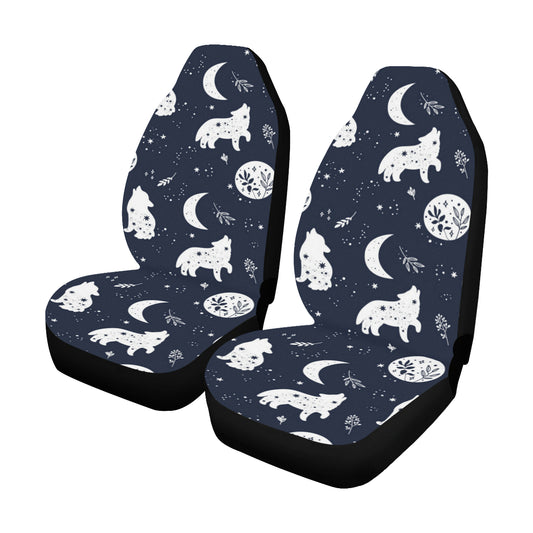Wolf Moon Car Seat Covers 2 pc Retro Plants Night Navy Blue Front Seat Covers for Vehicle, Car SUV Truck Seat Protector Accessory Decoration