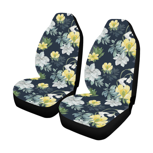Cute Flowers Car Seat Covers 2 pc, Floral Pretty Tropical Front Seat Covers, Car SUV Vans Seat Protector Accessory