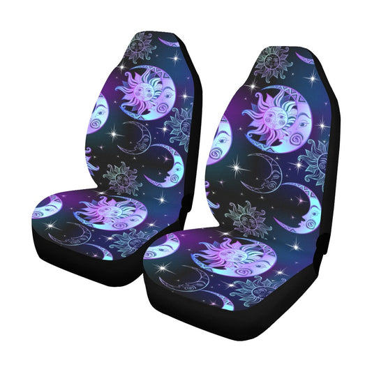Sun Moon Stars Car Seat Covers for Vehicle (2 pcs), Celestial Retro Purple Witchy Front SUV Auto Truck Universal Protector Women Accessories