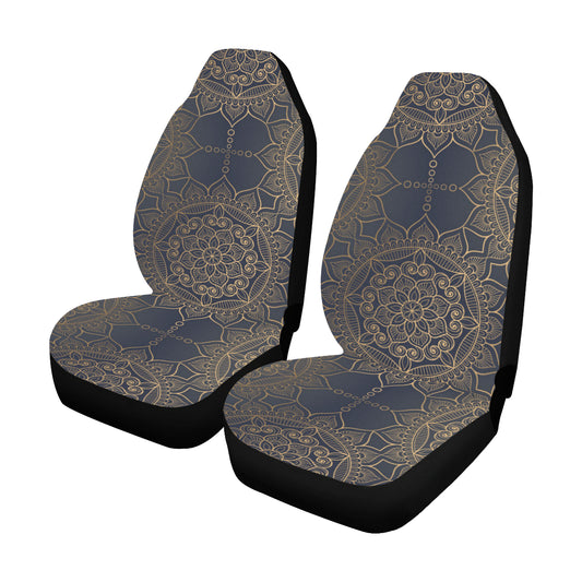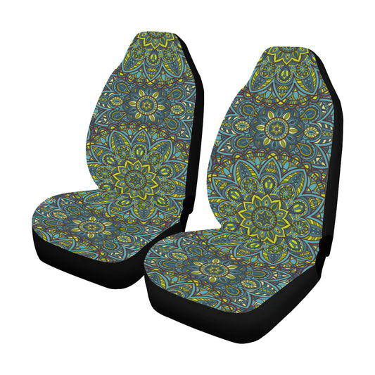 Blue Mandala Boho Car Seat Covers 2 pc, Tribal Indian Pattern Bohemian Oriental Art Front Seat Covers, Car SUV Protector Accessory Decor