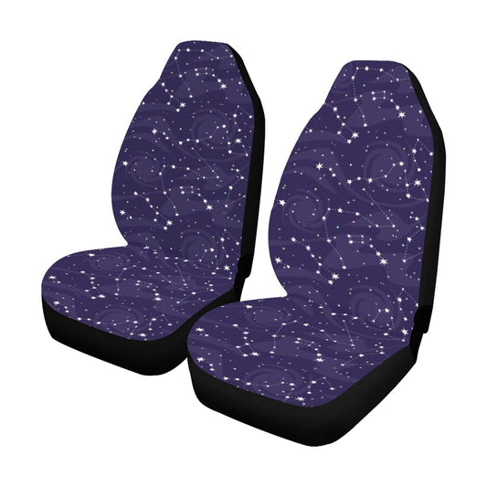 Constellation Space Car Seat Covers 2 pc, Blue Purple Galaxy Stars Pattern Front Seat Covers SUV Seat Protector Accessory Decoration